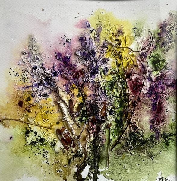Heathland and heather create marvelous colours in late summer in our Dales uplands. This incorporates dried organic plant life and paint